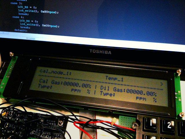 Yeah, I know this is the same picture as my 4x40 LCD project (which I'm planning on using for this), but it's the only picture really that I really have right now without finding a scanner and scanning pictures from 2003. This is a project I've been working on for several years. It's a gas dilution calibrator used in order to dilute a higher concentration gas with a dilution gas (either Nitrogen or balanced air) to a lower concentration using two or more mass flow controllers (MFCs). I was lucky to work with Cubix Corporation/TRC to get an allowence to buy two brand new Omega MFCs to make a manually operated gas dilution system intended to satisfy the criteria for EPA Method 205A. I made an Excel spreadsheet to enter in all the data and after it worked I decided to make a more embedded design to control it. I'm thinking of using the PIC18F4550 for the controller since I have a development board for it. Well, maybe if I get a big surplus of funds to buy some good MFCs (about $1400 for a pair) then maybe I'll test my latest code attempt I've written in Dev C++. This is a view of the attempt I made using a 4x40 character LCD display. You can read more about it on my 4x40 LCD project page