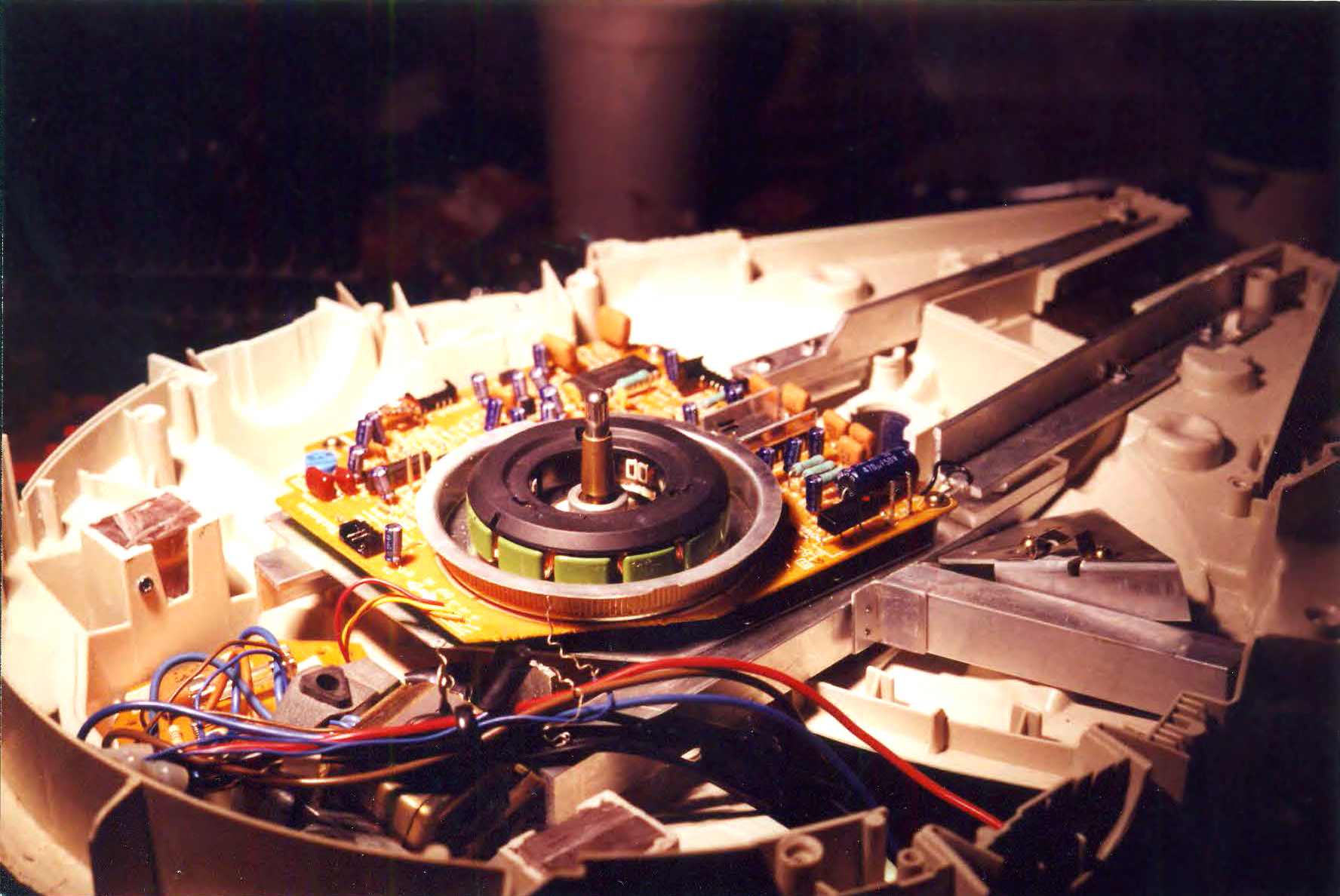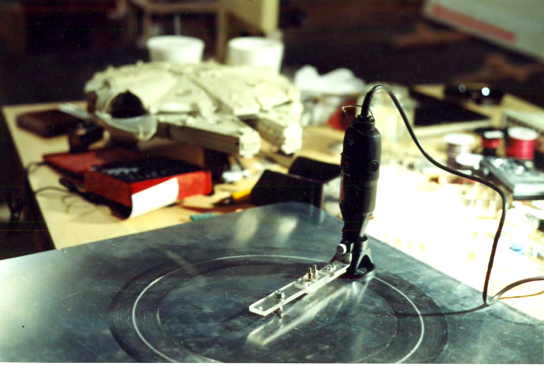 I found a 1977 Millennium Falcon toy years ago (most sure it was 1995 or 1996) for two dollars missing all the parts. I always wanted one as a kid. I stored it for a couple of years when I decided it would make a great Technics 1200 turntable mod. So with a little help from my friends at Green Guy Recycling for the recycled metal all I needed was a bit more supplies and a little a lot of patience since start to finish took me almost nine months to make.